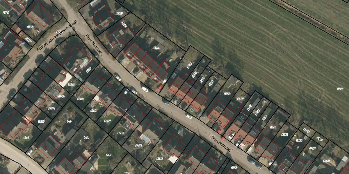 Het perceel waarop Burchtstraat 36 staat heeft een oppervlakte van 295 m². Dit is een middelgroot perceel. De perceeloppervlakte wordt geregistreerd door het Kadaster. Gedetailleerde informatie over de maten van dit perceel kunt u vinden in het rapport Kadastrale kaart met maatvoering van Burchtstraat 36.