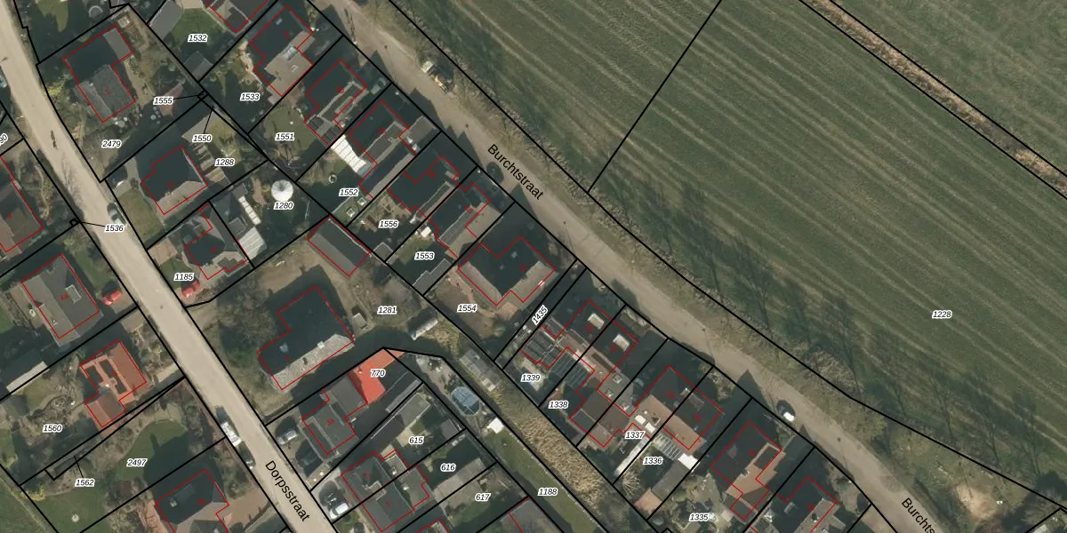 Het perceel waarop Burchtstraat 61 staat heeft een oppervlakte van 415 m². Dit is een groot perceel. De perceeloppervlakte wordt geregistreerd door het Kadaster. Gedetailleerde informatie over de maten van dit perceel kunt u vinden in het rapport Kadastrale kaart met maatvoering van Burchtstraat 61.
