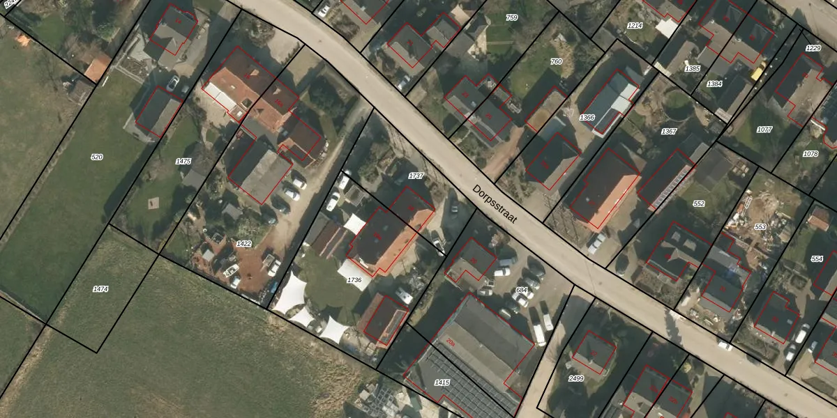 Het perceel waarop Dorpsstraat 18 staat heeft een oppervlakte van 505 m². Dit is een groot perceel. De perceeloppervlakte wordt geregistreerd door het Kadaster. Gedetailleerde informatie over de maten van dit perceel kunt u vinden in het rapport Kadastrale kaart met maatvoering van Dorpsstraat 18.