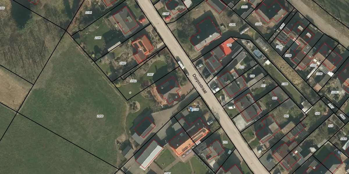 Het perceel waarop Dorpsstraat 6-b staat heeft een oppervlakte van 3771 m². Dit is een zeer groot perceel. De perceeloppervlakte wordt geregistreerd door het Kadaster. Gedetailleerde informatie over de maten van dit perceel kunt u vinden in het rapport Kadastrale kaart met maatvoering van Dorpsstraat 6-b.