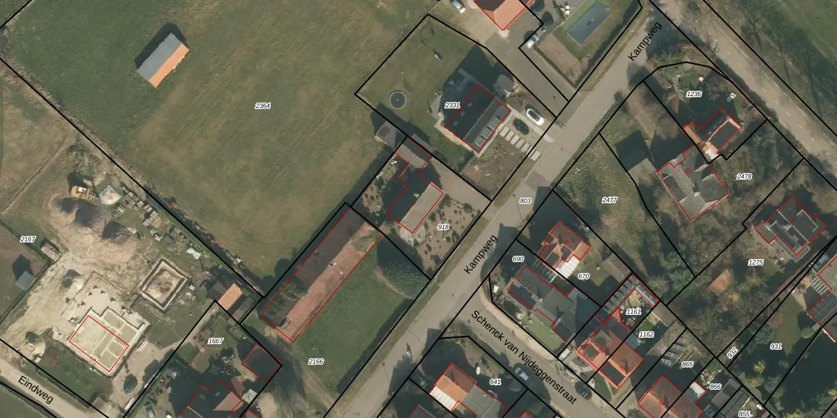 Het perceel waarop Kampweg 3 staat heeft een oppervlakte van 630 m². Dit is een groot perceel. De perceeloppervlakte wordt geregistreerd door het Kadaster. Gedetailleerde informatie over de maten van dit perceel kunt u vinden in het rapport Kadastrale kaart met maatvoering van Kampweg 3.