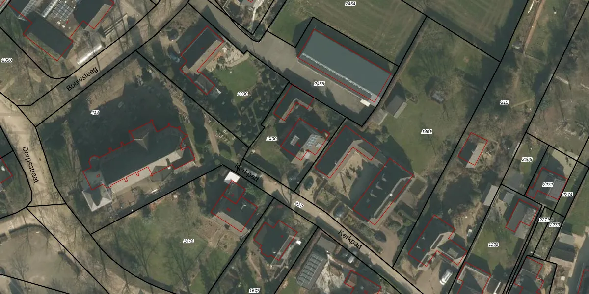 Het perceel waarop Kerkpad 1-a staat heeft een oppervlakte van 650 m². Dit is een groot perceel. De perceeloppervlakte wordt geregistreerd door het Kadaster. Gedetailleerde informatie over de maten van dit perceel kunt u vinden in het rapport Kadastrale kaart met maatvoering van Kerkpad 1-a.
