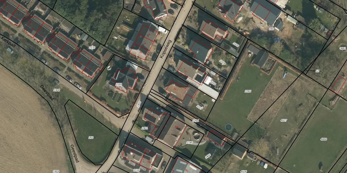 Gebruik de zoekbalk of klik op een perceel voor informatie over de adressen binnen dit perceel.