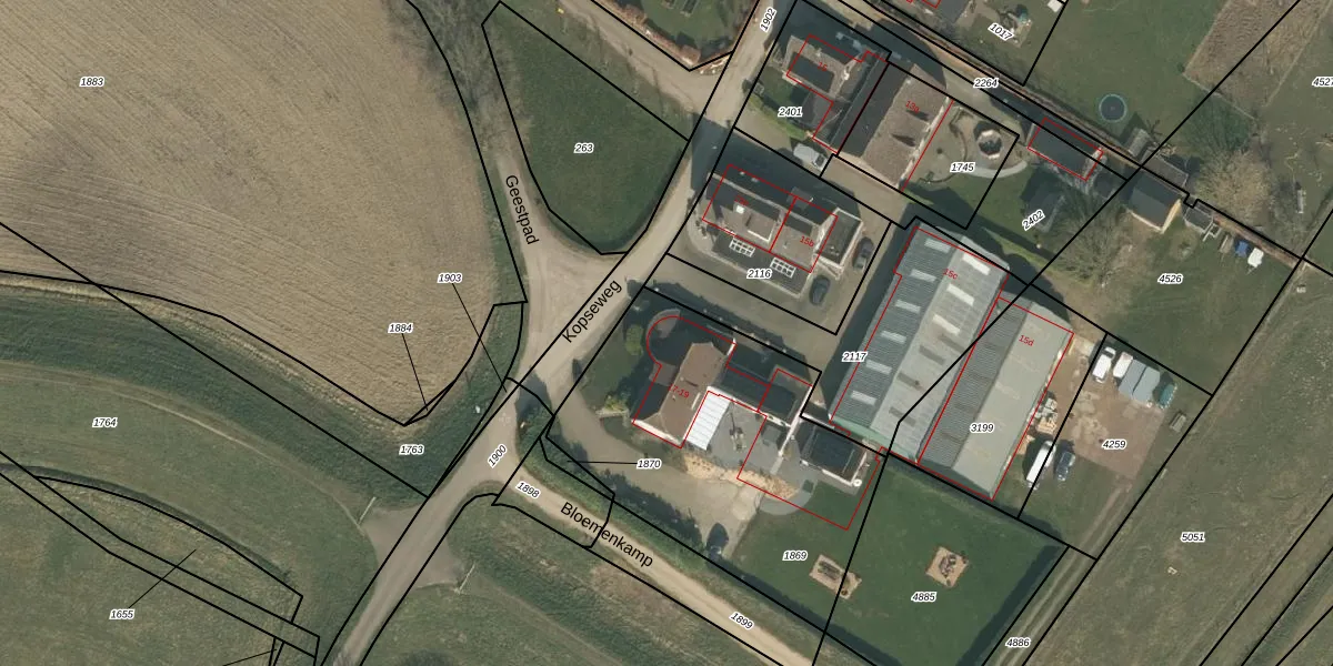 Het perceel waarop Kopseweg 19 staat heeft een oppervlakte van 1403 m². Dit is een zeer groot perceel. De perceeloppervlakte wordt geregistreerd door het Kadaster. Gedetailleerde informatie over de maten van dit perceel kunt u vinden in het rapport Kadastrale kaart met maatvoering van Kopseweg 19.