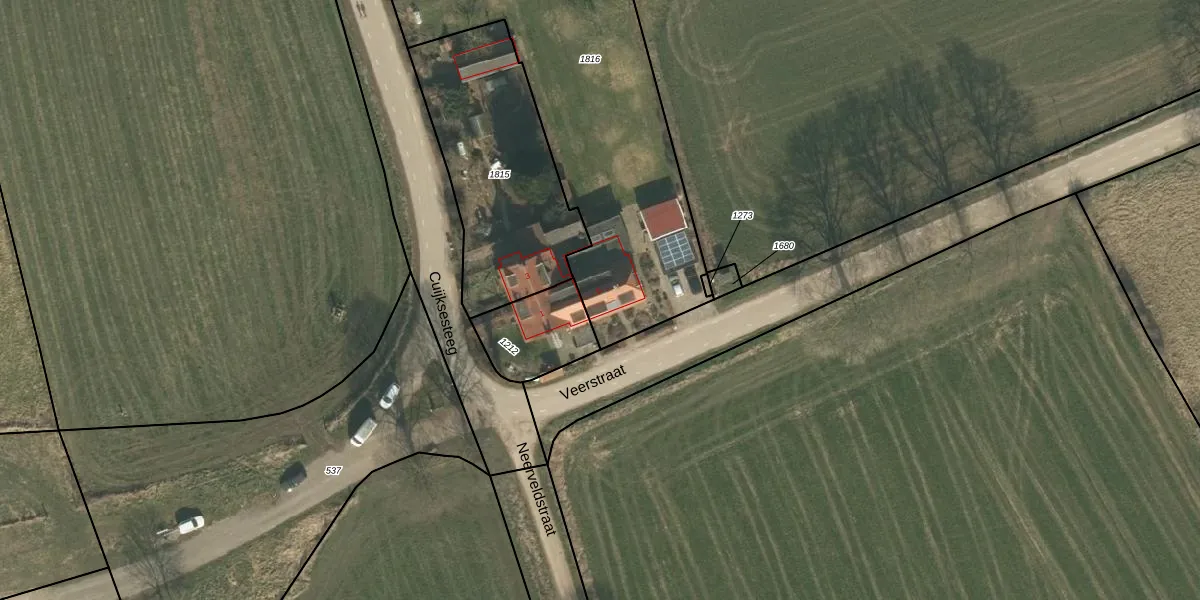 Het perceel waarop Veerstraat 6 staat heeft een oppervlakte van 1956 m². Dit is een zeer groot perceel. De perceeloppervlakte wordt geregistreerd door het Kadaster. Gedetailleerde informatie over de maten van dit perceel kunt u vinden in het rapport Kadastrale kaart met maatvoering van Veerstraat 6.