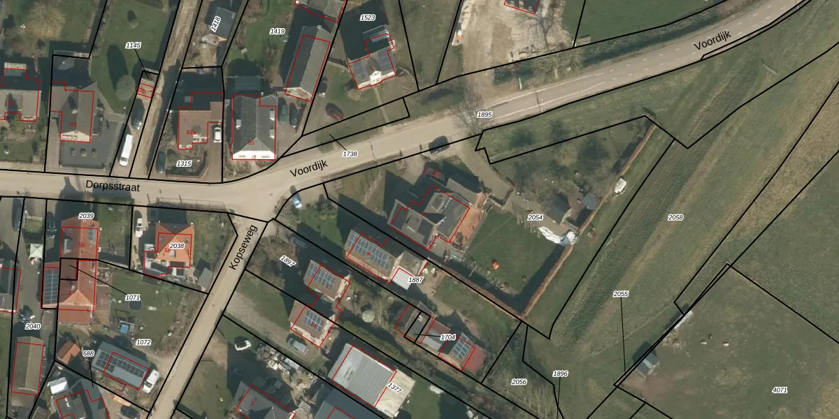 Het perceel waarop Voordijk 2 staat heeft een oppervlakte van 2130 m². Dit is een zeer groot perceel. De perceeloppervlakte wordt geregistreerd door het Kadaster. Gedetailleerde informatie over de maten van dit perceel kunt u vinden in het rapport Kadastrale kaart met maatvoering van Voordijk 2.