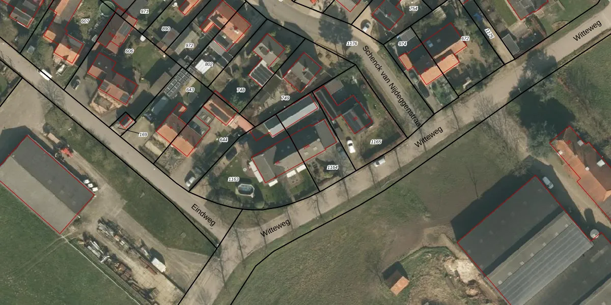 Witteweg 28-a is gelegen op kadastraal perceel MOO00C1164. Deze kadastrale aanduiding is uniek en wordt gebruikt door het Kadaster om eigendomsrechten en andere zakelijke rechten vast te leggen. Het perceel maakt onderdeel uit van de kadastrale gemeente Mook en Middelaar.