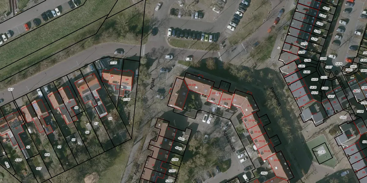 Agaat 5 is gelegen op kadastraal perceel MDB01O3563. Deze kadastrale aanduiding is uniek en wordt gebruikt door het Kadaster om eigendomsrechten en andere zakelijke rechten vast te leggen. Het perceel maakt onderdeel uit van de kadastrale gemeente Middelburg.