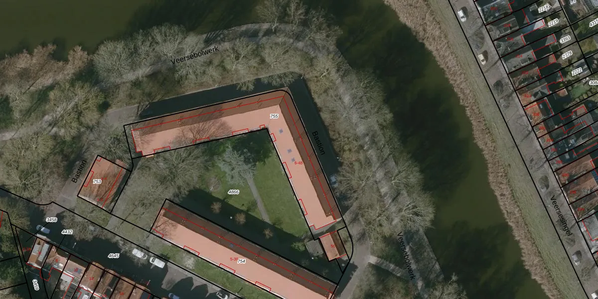 Het perceel waarop Bastion 32 staat heeft een oppervlakte van 1185 m². Dit is een zeer groot perceel. De perceeloppervlakte wordt geregistreerd door het Kadaster. Gedetailleerde informatie over de maten van dit perceel kunt u vinden in het rapport Kadastrale kaart met maatvoering van Bastion 32.