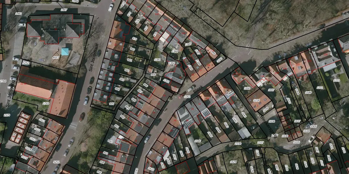 Het perceel waarop Bleek 21 staat heeft een oppervlakte van 65 m². Dit is een klein perceel. De perceeloppervlakte wordt geregistreerd door het Kadaster. Gedetailleerde informatie over de maten van dit perceel kunt u vinden in het rapport Kadastrale kaart met maatvoering van Bleek 21.