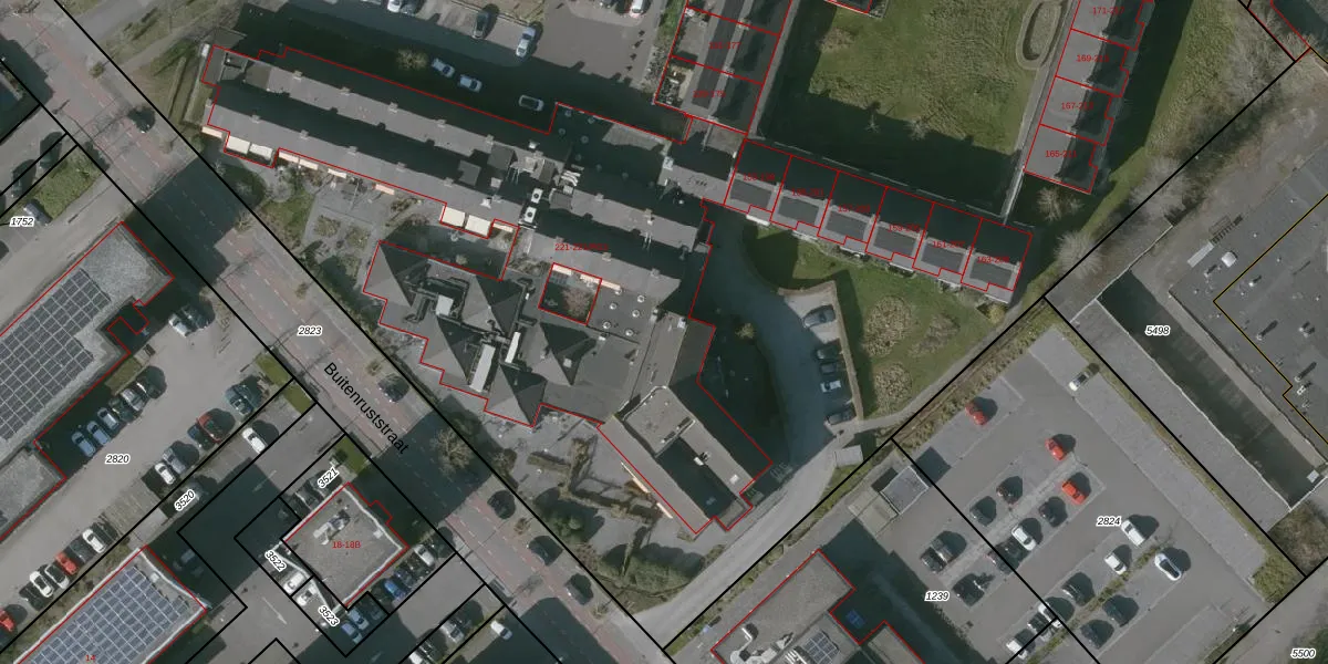 Buitenruststraat 221-K807 is gelegen op kadastraal perceel MDB01O1450. Deze kadastrale aanduiding is uniek en wordt gebruikt door het Kadaster om eigendomsrechten en andere zakelijke rechten vast te leggen. Het perceel maakt onderdeel uit van de kadastrale gemeente Middelburg.