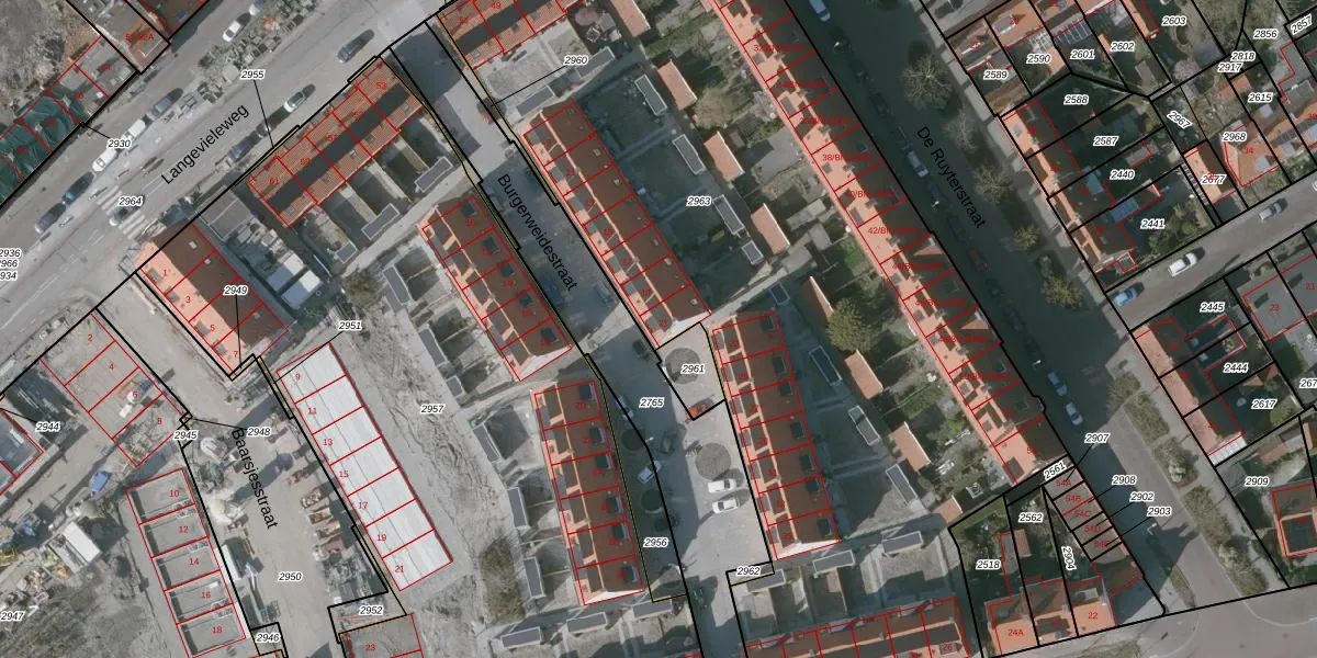 Burgerweidestraat 21 is gelegen op kadastraal perceel MDB01I2963. Deze kadastrale aanduiding is uniek en wordt gebruikt door het Kadaster om eigendomsrechten en andere zakelijke rechten vast te leggen. Het perceel maakt onderdeel uit van de kadastrale gemeente Middelburg.