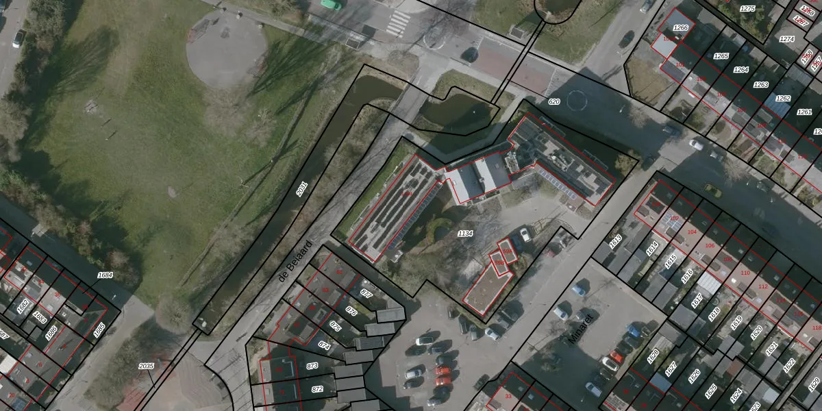 Het perceel waarop de Beiaard 55 staat heeft een oppervlakte van 2030 m². Dit is een zeer groot perceel. De perceeloppervlakte wordt geregistreerd door het Kadaster. Gedetailleerde informatie over de maten van dit perceel kunt u vinden in het rapport Kadastrale kaart met maatvoering van de Beiaard 55.