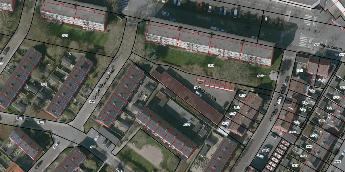 Het perceel waarop De Driehoek 12 staat heeft een oppervlakte van 992 m². Dit is een groot perceel. De perceeloppervlakte wordt geregistreerd door het Kadaster. Gedetailleerde informatie over de maten van dit perceel kunt u vinden in het rapport Kadastrale kaart met maatvoering van De Driehoek 12.