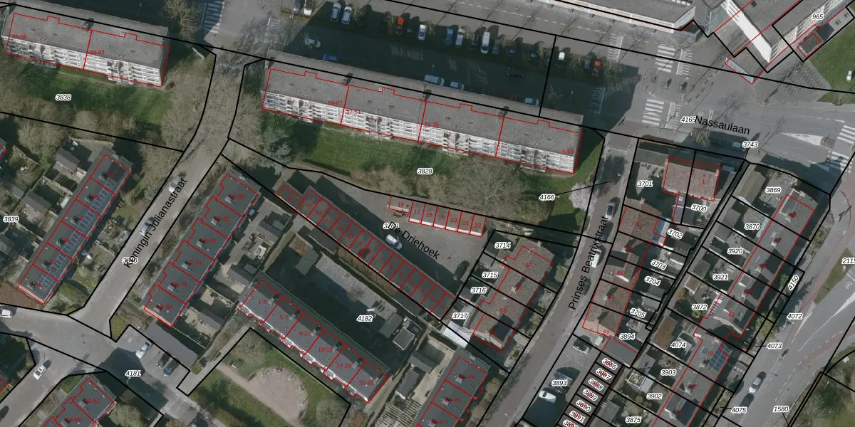 Het perceel waarop De Driehoek 18 staat heeft een oppervlakte van 992 m². Dit is een groot perceel. De perceeloppervlakte wordt geregistreerd door het Kadaster. Gedetailleerde informatie over de maten van dit perceel kunt u vinden in het rapport Kadastrale kaart met maatvoering van De Driehoek 18.