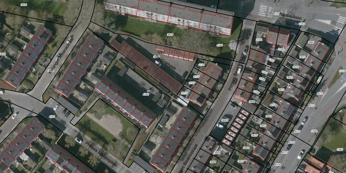 Het perceel waarop De Driehoek 2 staat heeft een oppervlakte van 992 m². Dit is een groot perceel. De perceeloppervlakte wordt geregistreerd door het Kadaster. Gedetailleerde informatie over de maten van dit perceel kunt u vinden in het rapport Kadastrale kaart met maatvoering van De Driehoek 2.