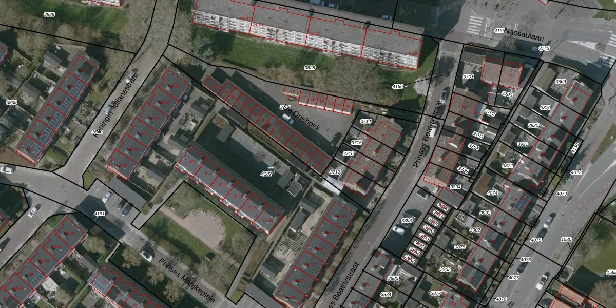 Het perceel waarop De Driehoek 3 staat heeft een oppervlakte van 992 m². Dit is een groot perceel. De perceeloppervlakte wordt geregistreerd door het Kadaster. Gedetailleerde informatie over de maten van dit perceel kunt u vinden in het rapport Kadastrale kaart met maatvoering van De Driehoek 3.