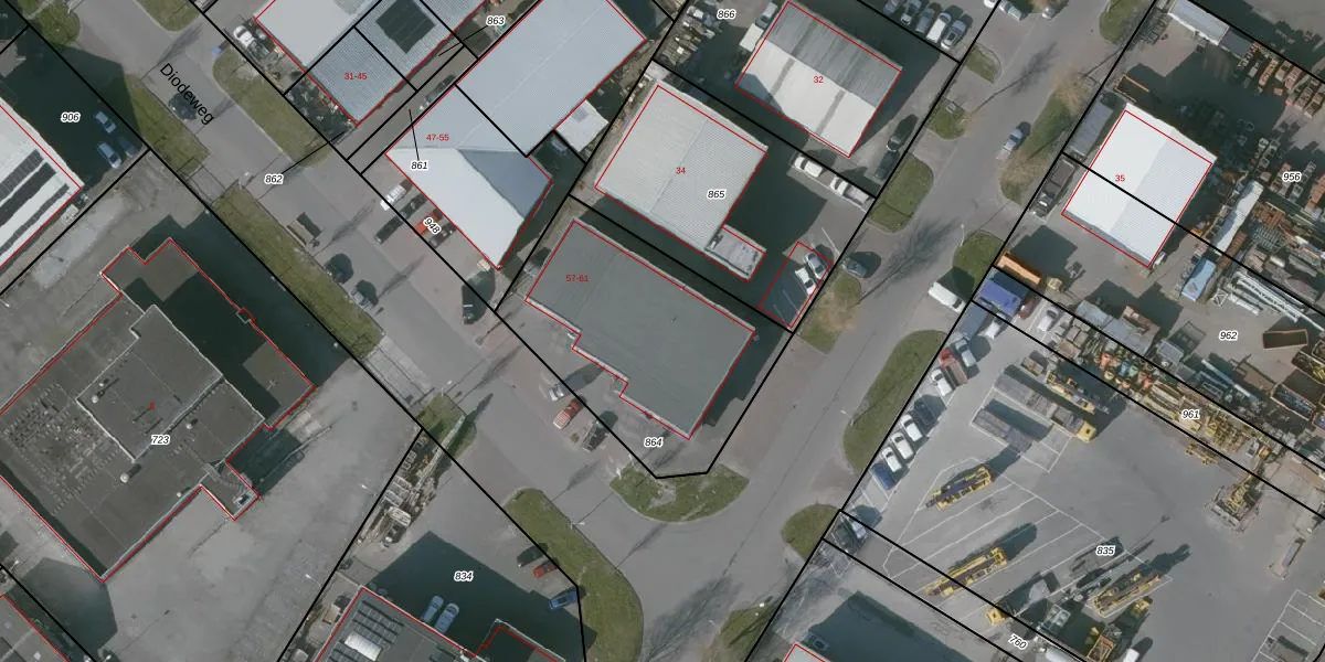 Diodeweg 61 is gelegen op kadastraal perceel MDB01M864. Deze kadastrale aanduiding is uniek en wordt gebruikt door het Kadaster om eigendomsrechten en andere zakelijke rechten vast te leggen. Het perceel maakt onderdeel uit van de kadastrale gemeente Middelburg.