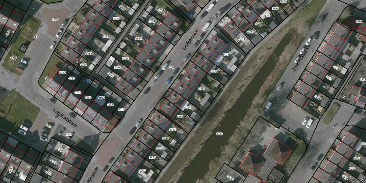 Het perceel waarop Dolfijnstraat 27 staat heeft een oppervlakte van 434 m². Dit is een groot perceel. De perceeloppervlakte wordt geregistreerd door het Kadaster. Gedetailleerde informatie over de maten van dit perceel kunt u vinden in het rapport Kadastrale kaart met maatvoering van Dolfijnstraat 27.