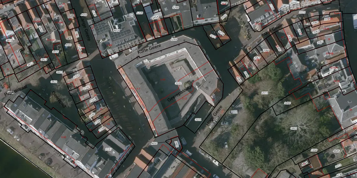 Geerepassage 7 is gelegen op kadastraal perceel MDB01L3102. Deze kadastrale aanduiding is uniek en wordt gebruikt door het Kadaster om eigendomsrechten en andere zakelijke rechten vast te leggen. Het perceel maakt onderdeel uit van de kadastrale gemeente Middelburg.