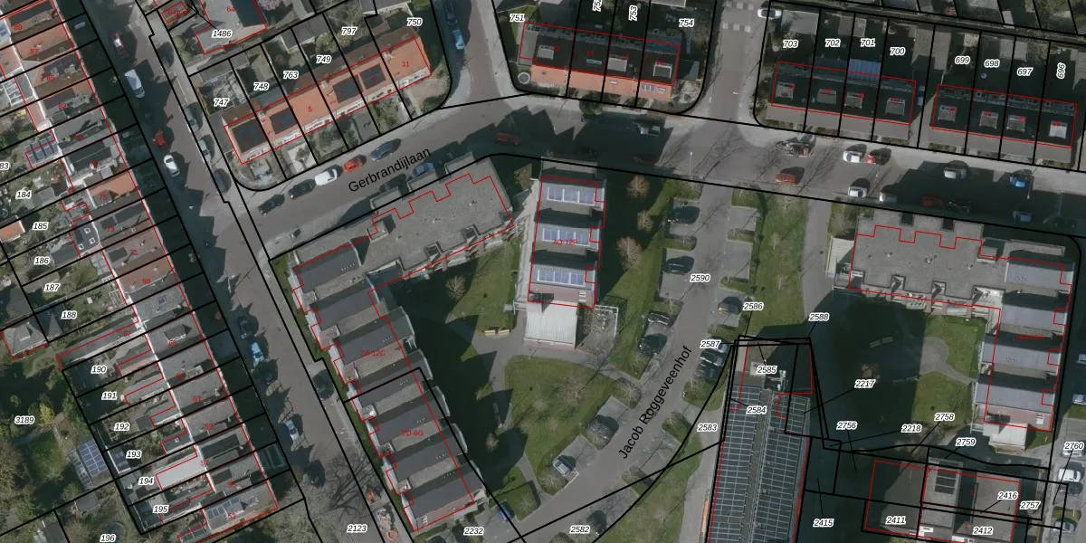 Het perceel waarop Gerbrandijlaan 4-F staat heeft een oppervlakte van 6281 m². Dit is een zeer groot perceel. De perceeloppervlakte wordt geregistreerd door het Kadaster. Gedetailleerde informatie over de maten van dit perceel kunt u vinden in het rapport Kadastrale kaart met maatvoering van Gerbrandijlaan 4-F.