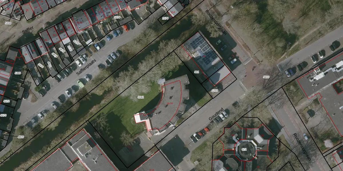 Het perceel waarop Goudend 50 staat heeft een oppervlakte van 2330 m². Dit is een zeer groot perceel. De perceeloppervlakte wordt geregistreerd door het Kadaster. Gedetailleerde informatie over de maten van dit perceel kunt u vinden in het rapport Kadastrale kaart met maatvoering van Goudend 50.