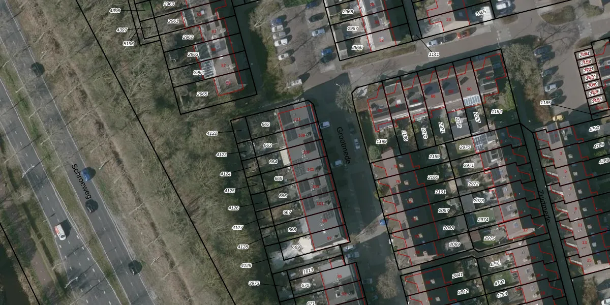 Grootmede 107 is gelegen op kadastraal perceel MDB01O664. Deze kadastrale aanduiding is uniek en wordt gebruikt door het Kadaster om eigendomsrechten en andere zakelijke rechten vast te leggen. Het perceel maakt onderdeel uit van de kadastrale gemeente Middelburg.