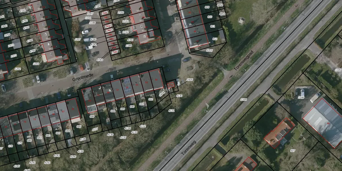 Het perceel waarop Grootmede 47-A staat heeft een oppervlakte van 41 m². Dit is een klein perceel. De perceeloppervlakte wordt geregistreerd door het Kadaster. Gedetailleerde informatie over de maten van dit perceel kunt u vinden in het rapport Kadastrale kaart met maatvoering van Grootmede 47-A.