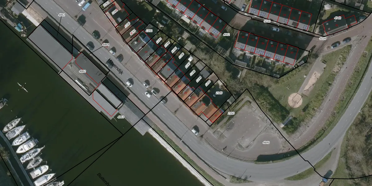 Het perceel waarop Havendijk 25 staat heeft een oppervlakte van 109 m². Dit is een middelgroot perceel. De perceeloppervlakte wordt geregistreerd door het Kadaster. Gedetailleerde informatie over de maten van dit perceel kunt u vinden in het rapport Kadastrale kaart met maatvoering van Havendijk 25.