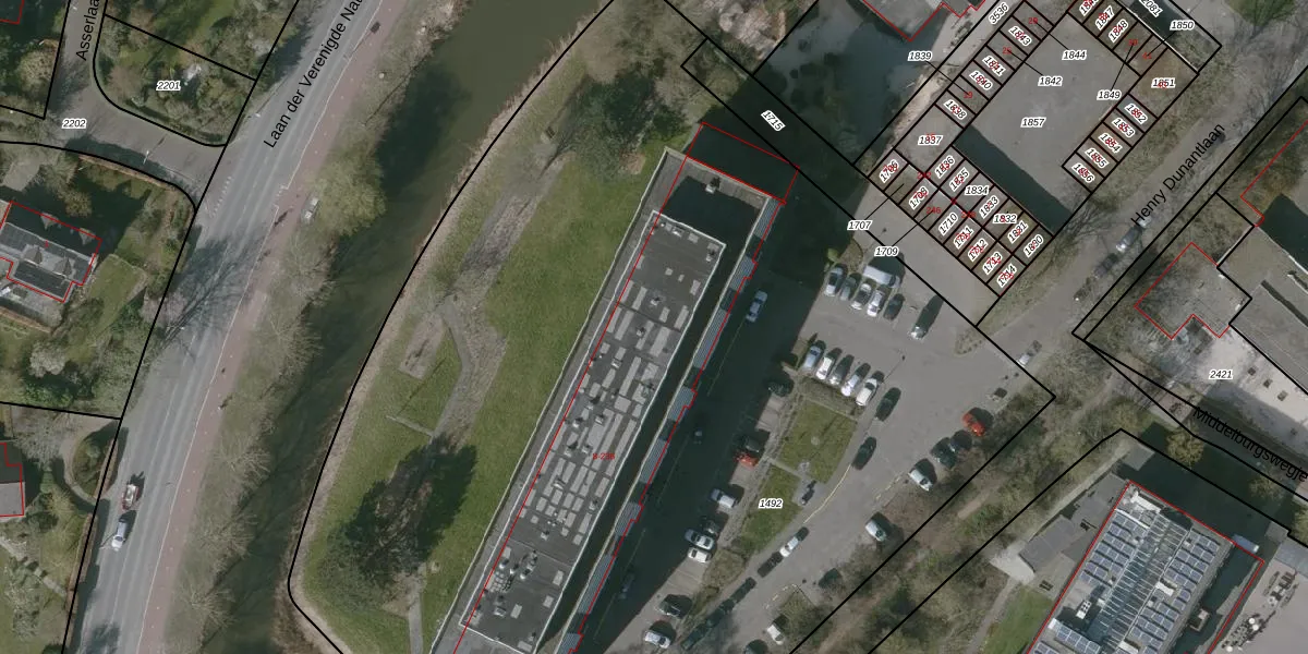 Het perceel waarop Henry Dunantlaan 76 staat heeft een oppervlakte van 8320 m². Dit is een zeer groot perceel. De perceeloppervlakte wordt geregistreerd door het Kadaster. Gedetailleerde informatie over de maten van dit perceel kunt u vinden in het rapport Kadastrale kaart met maatvoering van Henry Dunantlaan 76.