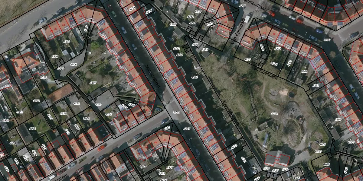 Het perceel waarop Jasmijnstraat 23 staat heeft een oppervlakte van 2705 m². Dit is een zeer groot perceel. De perceeloppervlakte wordt geregistreerd door het Kadaster. Gedetailleerde informatie over de maten van dit perceel kunt u vinden in het rapport Kadastrale kaart met maatvoering van Jasmijnstraat 23.