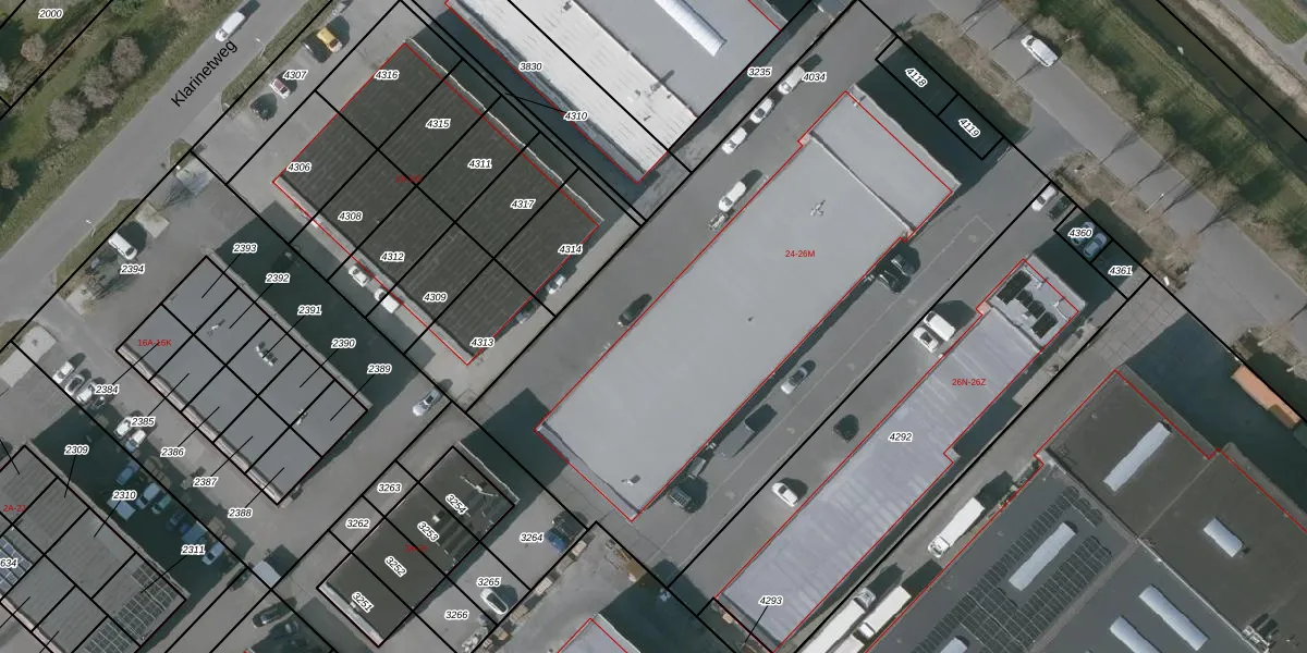 Het perceel waarop Klarinetweg 24-H staat heeft een oppervlakte van 3433 m². Dit is een zeer groot perceel. De perceeloppervlakte wordt geregistreerd door het Kadaster. Gedetailleerde informatie over de maten van dit perceel kunt u vinden in het rapport Kadastrale kaart met maatvoering van Klarinetweg 24-H.