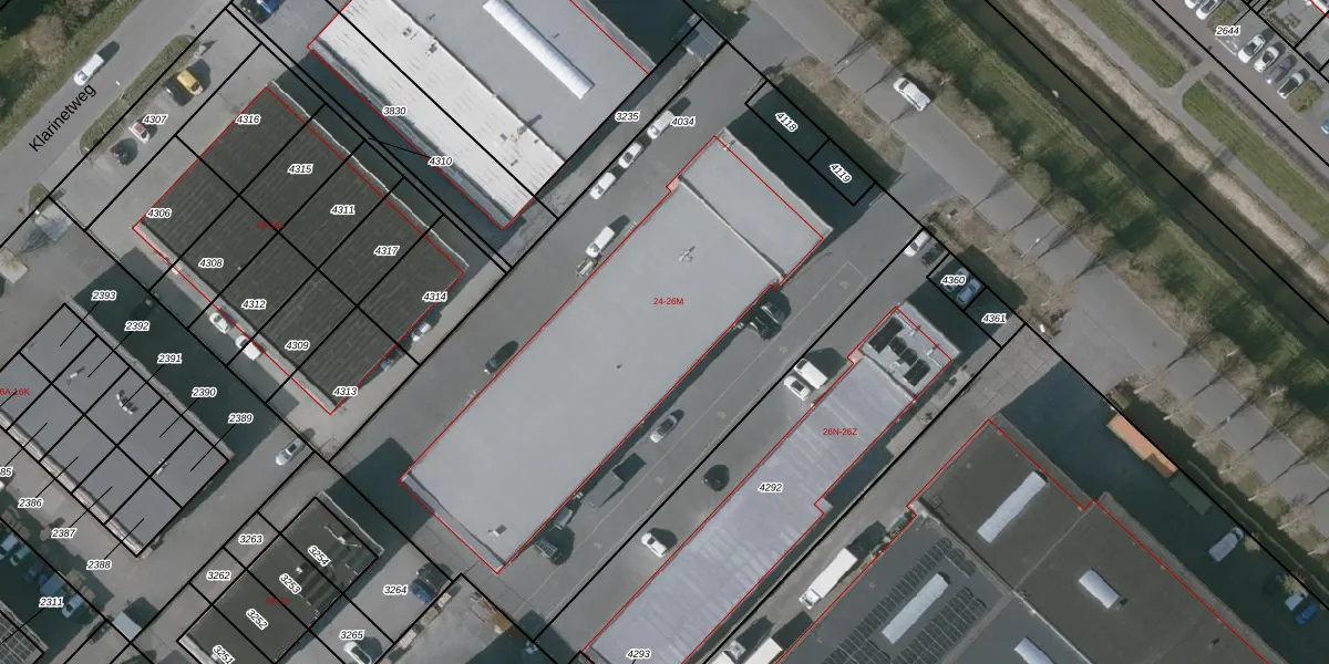 Het perceel waarop Klarinetweg 26-D staat heeft een oppervlakte van 3433 m². Dit is een zeer groot perceel. De perceeloppervlakte wordt geregistreerd door het Kadaster. Gedetailleerde informatie over de maten van dit perceel kunt u vinden in het rapport Kadastrale kaart met maatvoering van Klarinetweg 26-D.