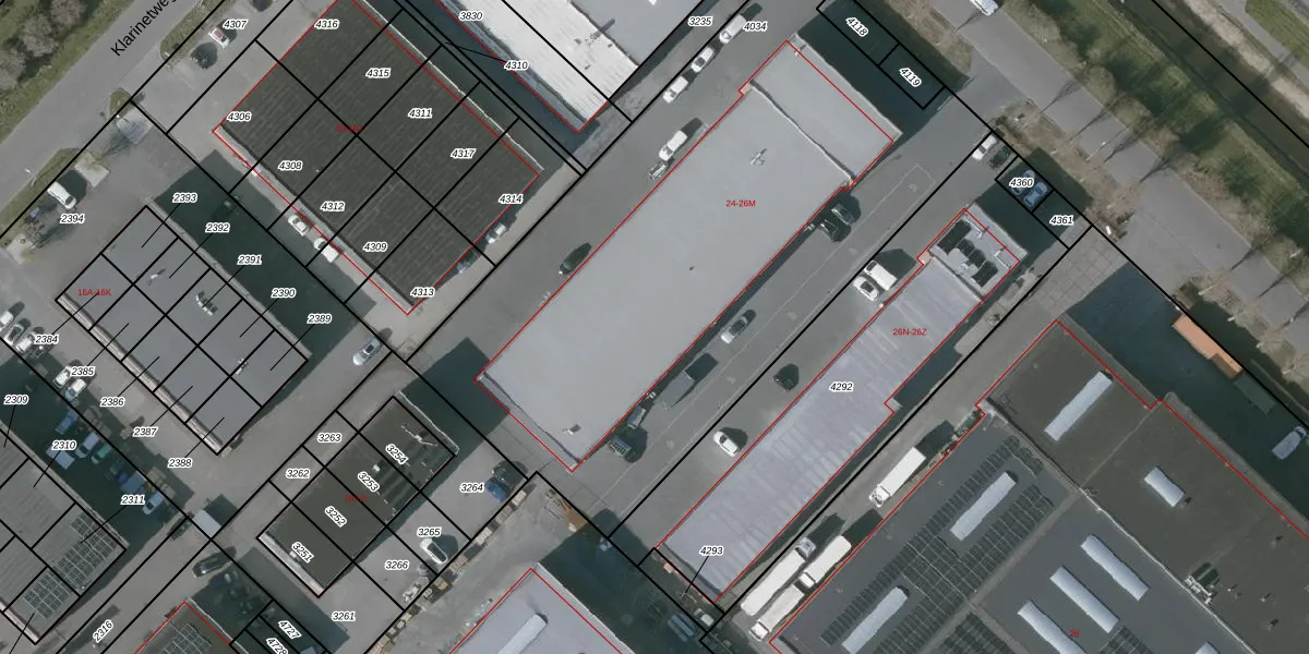 Het perceel waarop Klarinetweg 26-H staat heeft een oppervlakte van 3433 m². Dit is een zeer groot perceel. De perceeloppervlakte wordt geregistreerd door het Kadaster. Gedetailleerde informatie over de maten van dit perceel kunt u vinden in het rapport Kadastrale kaart met maatvoering van Klarinetweg 26-H.