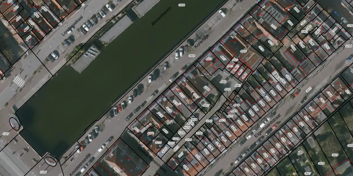 Het adres is gelegen op perceel 3277 in de sectie L en de kadastrale gemeente Middelburg. De kadastrale aanduiding is aldus MDB01-L-3277. De gemiddelde perceelgrootte in Middelburg is 1566,29 m². Dit perceel is kleiner: de perceeloppervlakte bedraagt 97 m². De grootste perceeloppervlakte in de kadastrale gemeente is 45,1 ha. De kleinste oppervlakte bedraagt 0 m². Op het perceel zijn 3 adressen aanwezig. De huidige grenzen van het perceel zijn digitaal in de Basisregistratie Kadaster (BRK) geregistreerd op 03-10-1997.