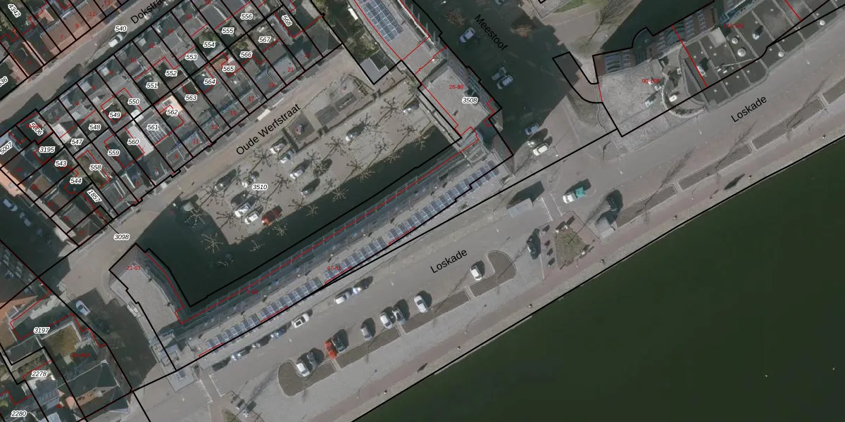 Het perceel waarop Loskade 59 staat heeft een oppervlakte van 2450 m². Dit is een zeer groot perceel. De perceeloppervlakte wordt geregistreerd door het Kadaster. Gedetailleerde informatie over de maten van dit perceel kunt u vinden in het rapport Kadastrale kaart met maatvoering van Loskade 59.