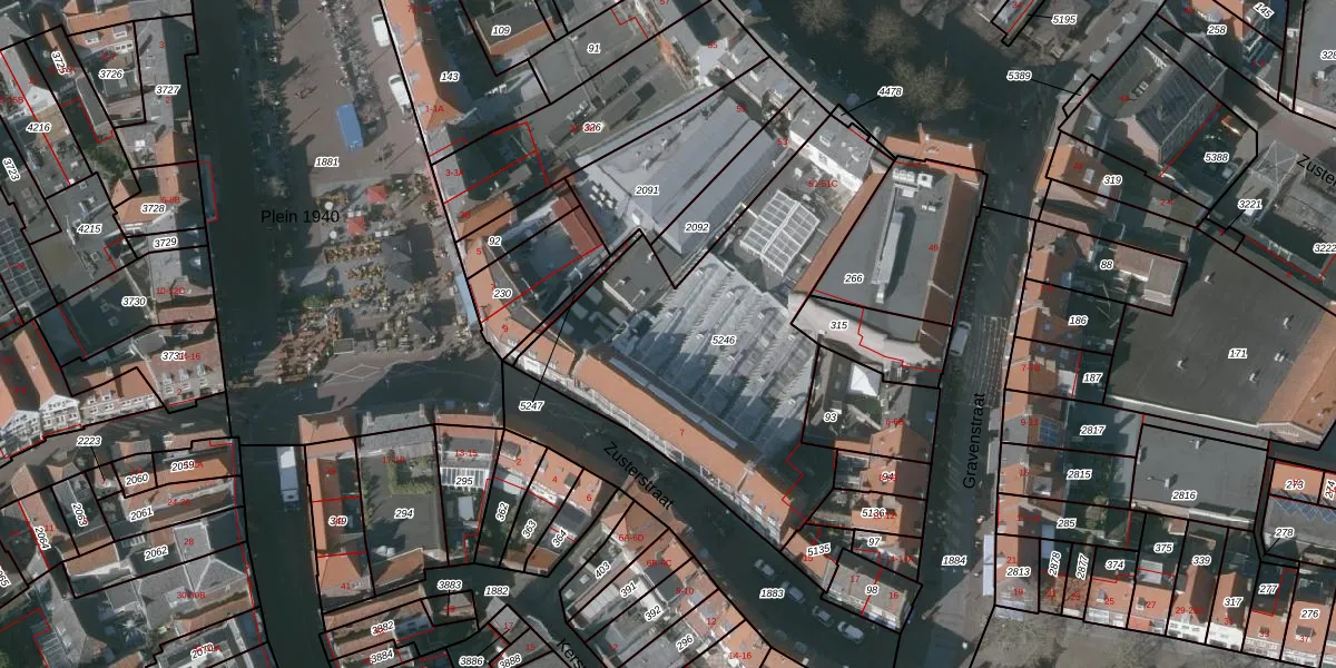 Het perceel waarop Markt 51-C staat heeft een oppervlakte van 1541 m². Dit is een zeer groot perceel. De perceeloppervlakte wordt geregistreerd door het Kadaster. Gedetailleerde informatie over de maten van dit perceel kunt u vinden in het rapport Kadastrale kaart met maatvoering van Markt 51-C.
