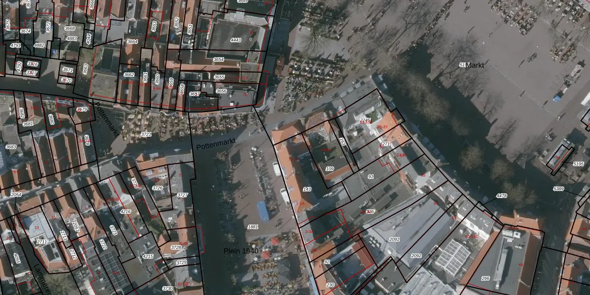 Het perceel waarop Markt 71 staat heeft een oppervlakte van 391 m². Dit is een groot perceel. De perceeloppervlakte wordt geregistreerd door het Kadaster. Gedetailleerde informatie over de maten van dit perceel kunt u vinden in het rapport Kadastrale kaart met maatvoering van Markt 71.