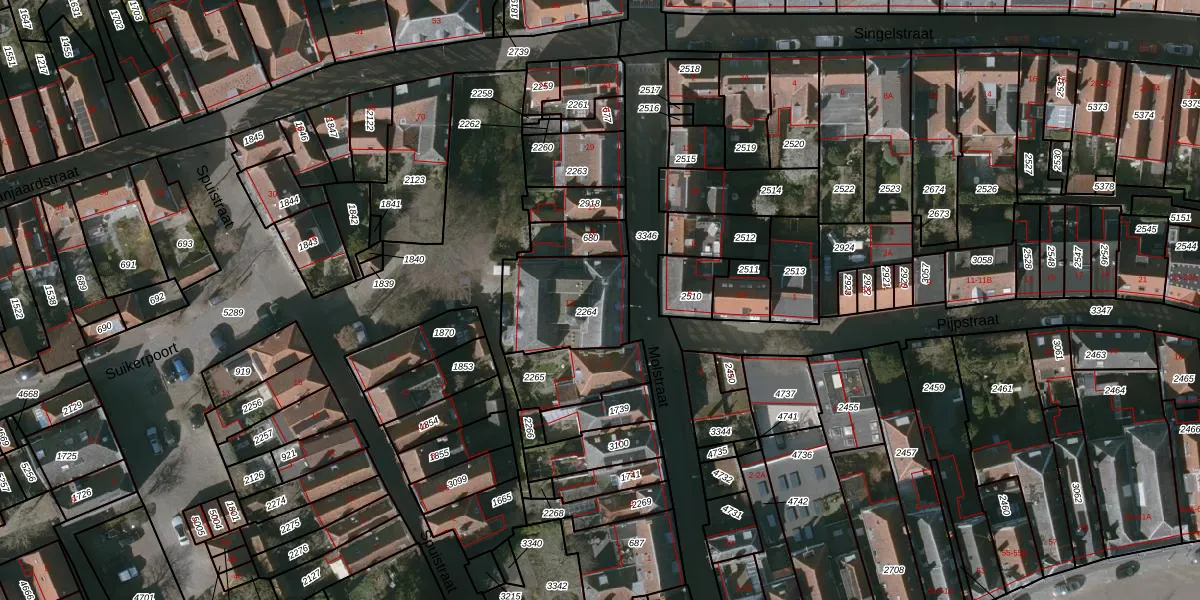 Gebruik de zoekbalk of klik op een perceel voor informatie over de adressen binnen dit perceel.