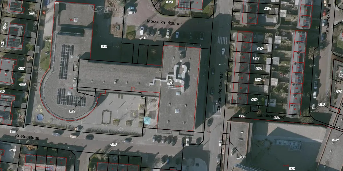 Mosselkreekstraat 73 is gelegen op kadastraal perceel MDB01S3249. Deze kadastrale aanduiding is uniek en wordt gebruikt door het Kadaster om eigendomsrechten en andere zakelijke rechten vast te leggen. Het perceel maakt onderdeel uit van de kadastrale gemeente Middelburg.