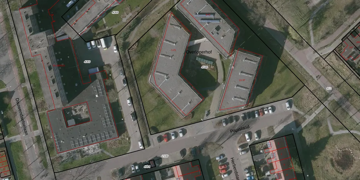 Het perceel waarop Overloperhof 2 staat heeft een oppervlakte van 4720 m². Dit is een zeer groot perceel. De perceeloppervlakte wordt geregistreerd door het Kadaster. Gedetailleerde informatie over de maten van dit perceel kunt u vinden in het rapport Kadastrale kaart met maatvoering van Overloperhof 2.