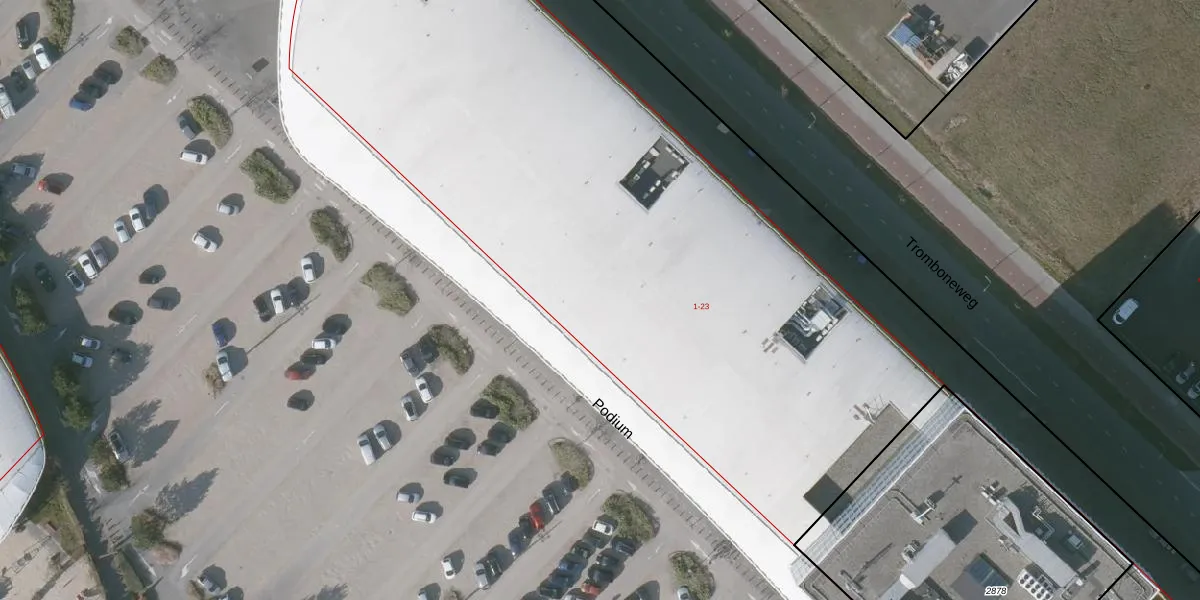 Het perceel waarop Podium 7 staat heeft een oppervlakte van 6,5 ha. Dit is een zeer groot perceel. De perceeloppervlakte wordt geregistreerd door het Kadaster. Gedetailleerde informatie over de maten van dit perceel kunt u vinden in het rapport Kadastrale kaart met maatvoering van Podium 7.