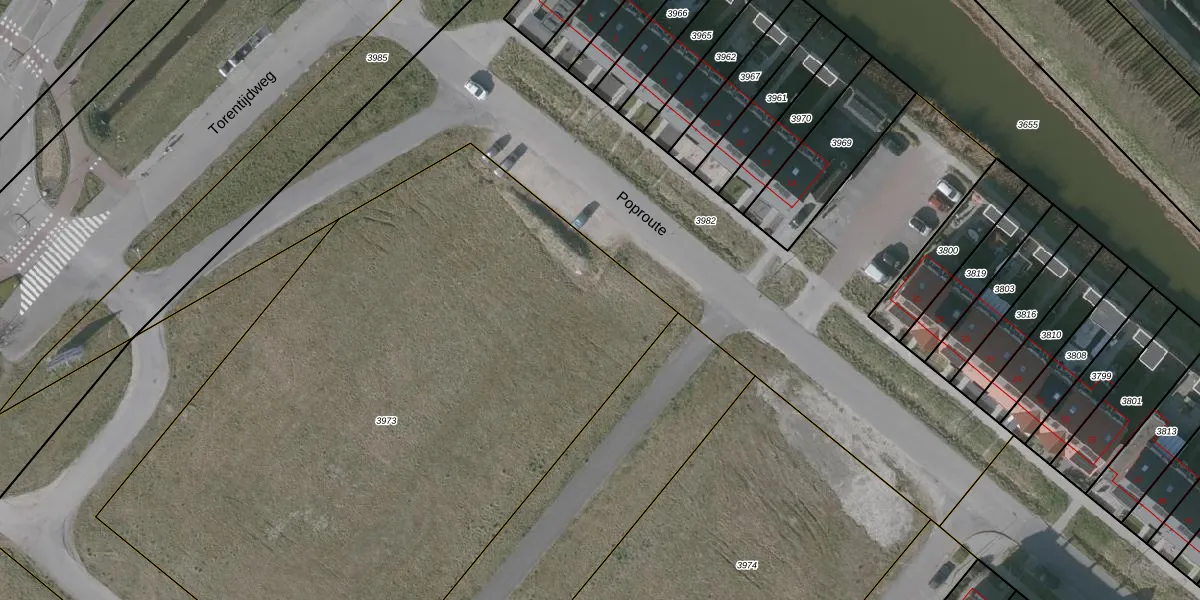 Poproute 14 is gelegen op kadastraal perceel MDB01P3973. Deze kadastrale aanduiding is uniek en wordt gebruikt door het Kadaster om eigendomsrechten en andere zakelijke rechten vast te leggen. Het perceel maakt onderdeel uit van de kadastrale gemeente Middelburg.