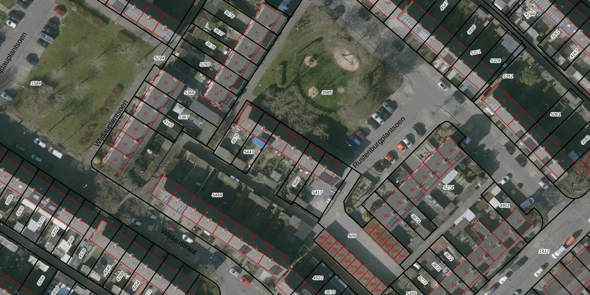 Het perceel waarop Rustenburgplantsoen 20 staat heeft een oppervlakte van 2919 m². Dit is een zeer groot perceel. De perceeloppervlakte wordt geregistreerd door het Kadaster. Gedetailleerde informatie over de maten van dit perceel kunt u vinden in het rapport Kadastrale kaart met maatvoering van Rustenburgplantsoen 20.