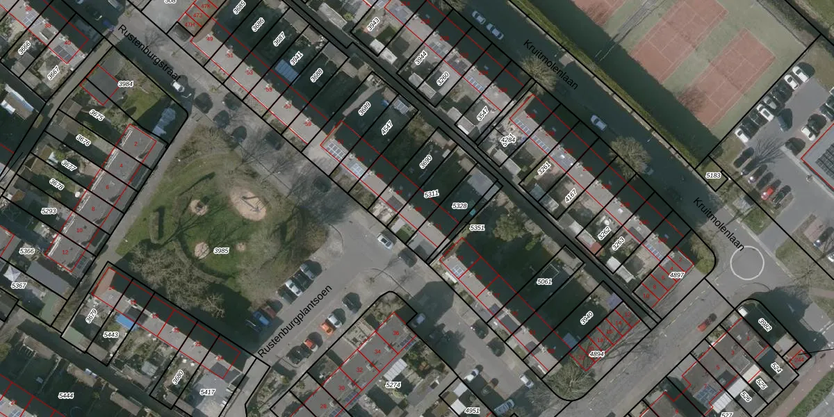Het perceel waarop Rustenburgstraat 69 staat heeft een oppervlakte van 163 m². Dit is een middelgroot perceel. De perceeloppervlakte wordt geregistreerd door het Kadaster. Gedetailleerde informatie over de maten van dit perceel kunt u vinden in het rapport Kadastrale kaart met maatvoering van Rustenburgstraat 69.