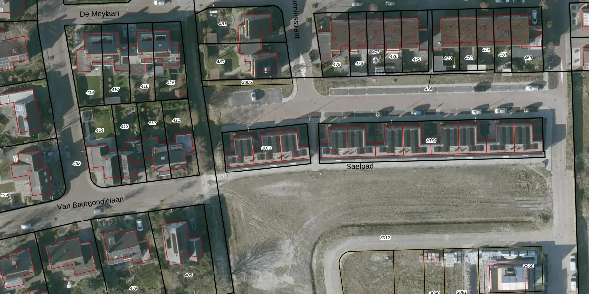 Het perceel waarop Saelpad 18 staat heeft een oppervlakte van 393 m². Dit is een groot perceel. De perceeloppervlakte wordt geregistreerd door het Kadaster. Gedetailleerde informatie over de maten van dit perceel kunt u vinden in het rapport Kadastrale kaart met maatvoering van Saelpad 18.