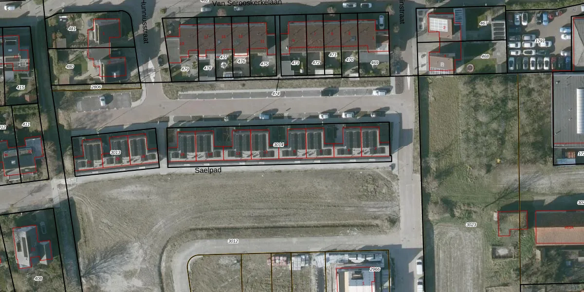 Het perceel waarop Saelpad 8 staat heeft een oppervlakte van 1033 m². Dit is een zeer groot perceel. De perceeloppervlakte wordt geregistreerd door het Kadaster. Gedetailleerde informatie over de maten van dit perceel kunt u vinden in het rapport Kadastrale kaart met maatvoering van Saelpad 8.