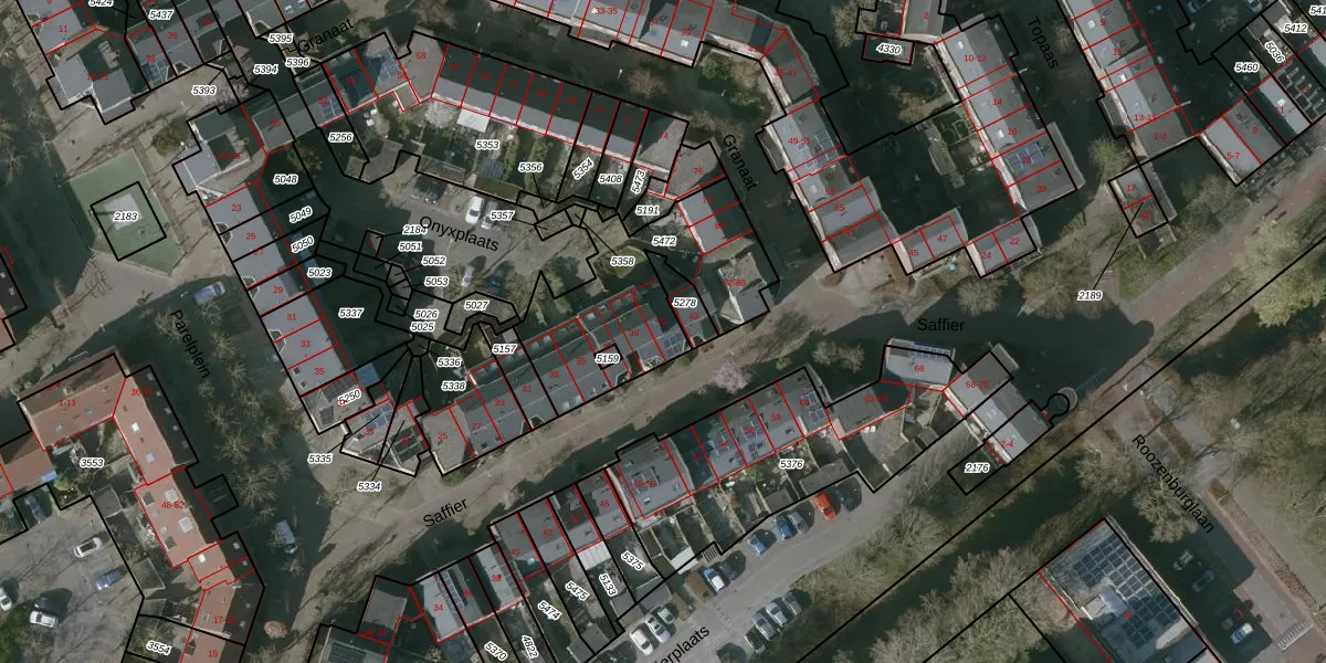 Het perceel waarop Saffier 41 staat heeft een oppervlakte van 684 m². Dit is een groot perceel. De perceeloppervlakte wordt geregistreerd door het Kadaster. Gedetailleerde informatie over de maten van dit perceel kunt u vinden in het rapport Kadastrale kaart met maatvoering van Saffier 41.