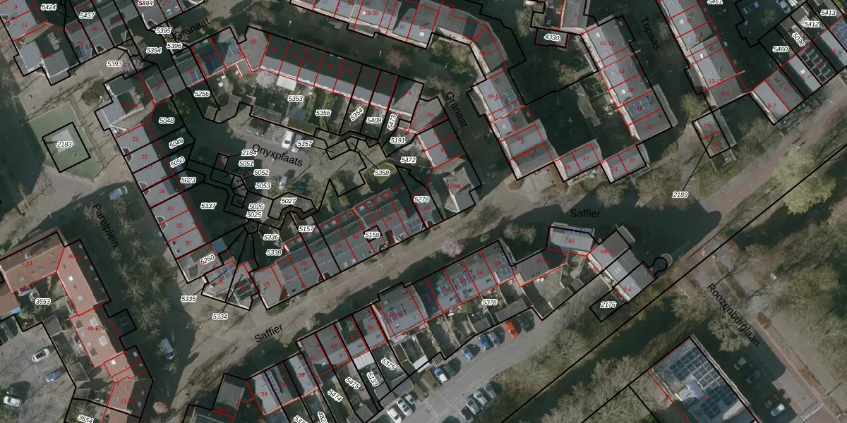 Gebruik de zoekbalk of klik op een perceel voor informatie over de adressen binnen dit perceel.