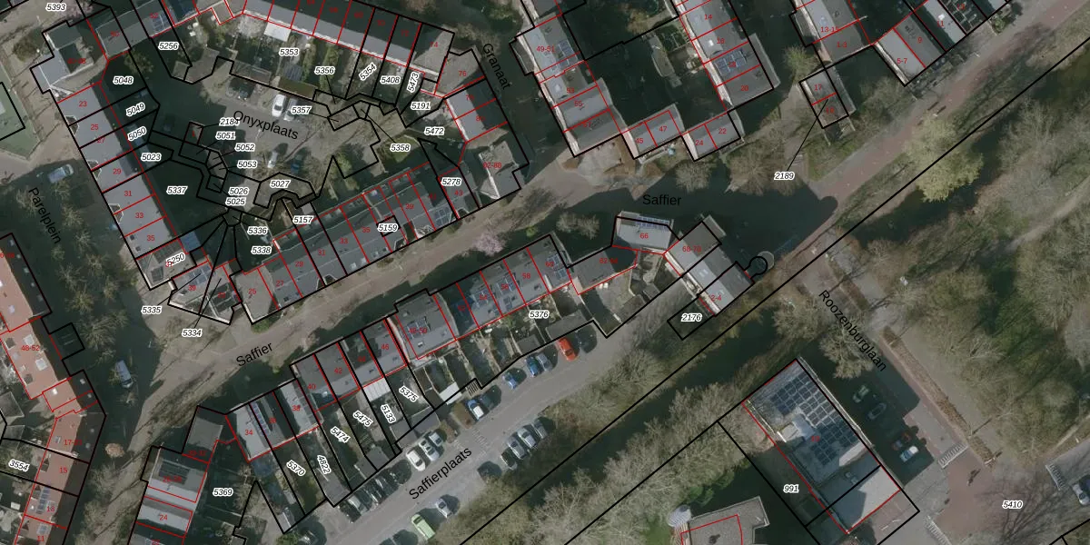 Het perceel waarop Saffier 60 staat heeft een oppervlakte van 930 m². Dit is een groot perceel. De perceeloppervlakte wordt geregistreerd door het Kadaster. Gedetailleerde informatie over de maten van dit perceel kunt u vinden in het rapport Kadastrale kaart met maatvoering van Saffier 60.
